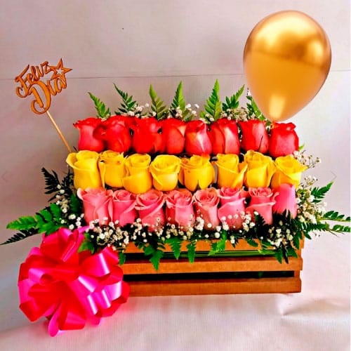 Jarrón con 18 Rosas Multicolor 🌹🌈